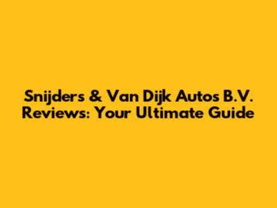 Snijders & Van Dijk Auto's: Real Reviews & Insights